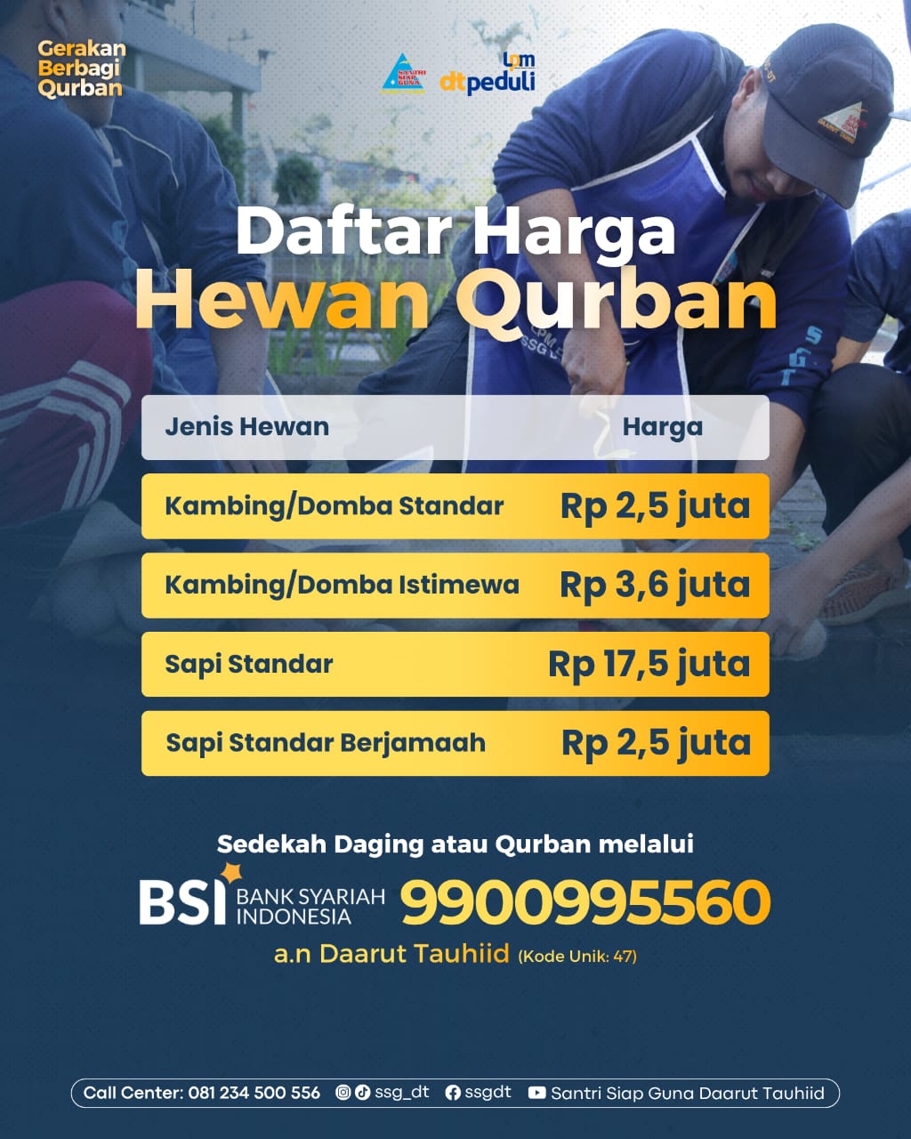 Idul Adha adalah momen untuk berbagi dan menghadirkan kebahagiaan. Namun, tidak semua orang memiliki kesempatan untuk berqurban secara utuh. Melihat hal tersebut, SSG-DT menghadirkan Gerakan Berbagi Qurban sebagai solusi agar lebih banyak orang bisa ikut ambil bagian dalam ibadah ini.